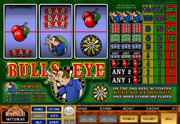 Description: Bulls Eye is a 3 reel, 1 payline and 3 coin Pokie Slot Machine Game.